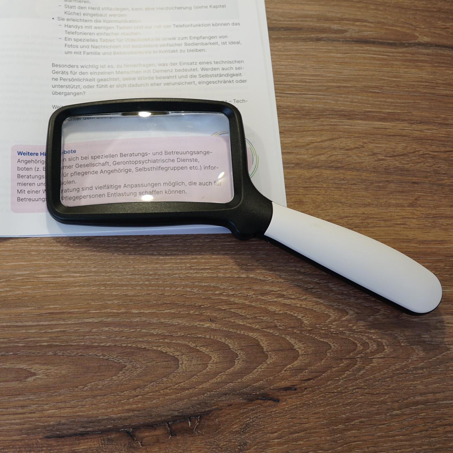 Viele unterschiedliche Arten von Lupen können bei Sehbeeinträchtigungen unterstützen, z.B. als Handlupe mit und ohne Beleuchtung, oder in Form von